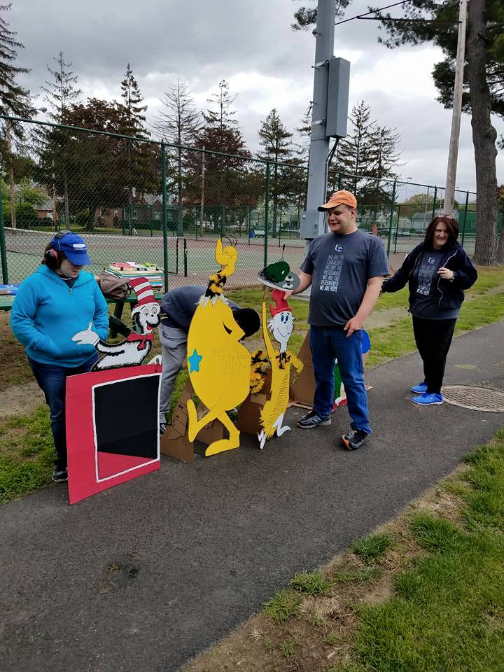 On May 12, 2017, participants in our Springfield Day Habilitation and Autism Program were all smiles getting the Relay For Life Holyoke/Chicopee event set up with our Dr. Seuss themed signs and characters. We love giving back to our community as part of our Hope Projects throughout the year!